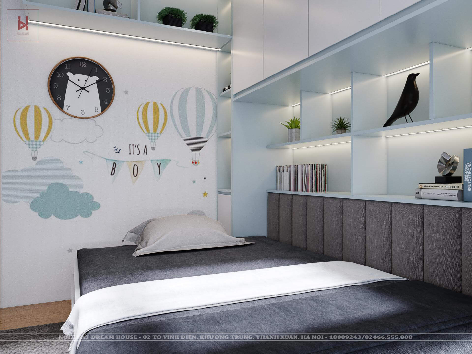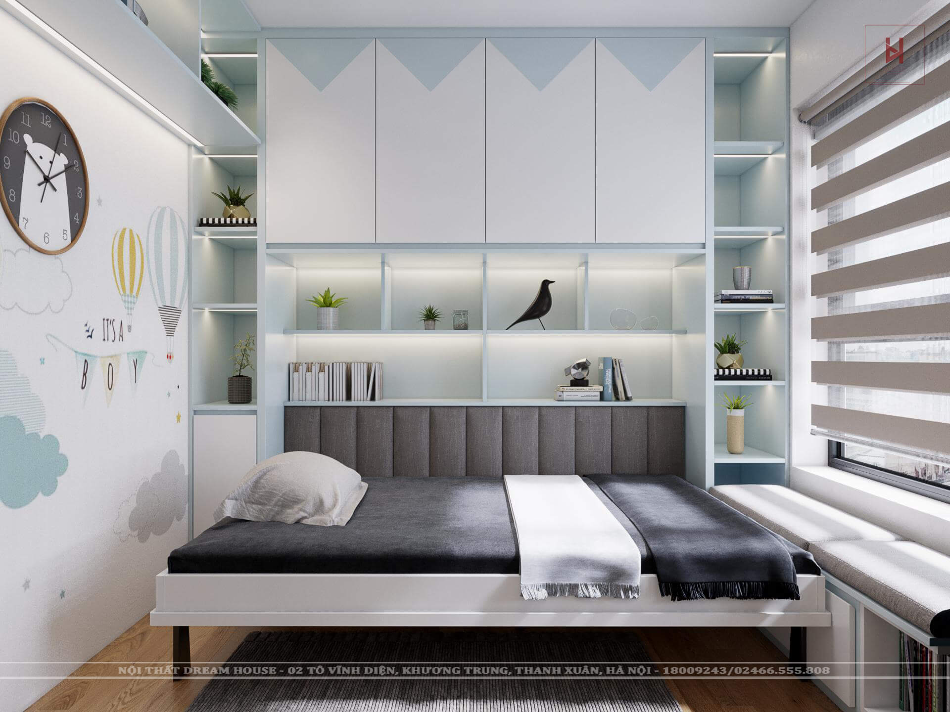 Gia đình anh Thành ở Vinhomes Ocean Park đã đến với Dream House để tìm kiếm giải pháp tốt nhất cho vấn đề phòng ngủ của bé yêu nhà mình. Diện tích phòng chỉ có 9m2 cho bé. Anh mong muốn con yêu có được không gian sống thoải mái để con học tập, vui chơi. Nếu sử dụng những sản phẩm nội thất thông thường sẽ chiếm nhiều diện tích phòng, đặc biệt là giường ngủ cứng có kích thước khá cồng kềnh, khiến phòng ngủ trở nên chật chội.