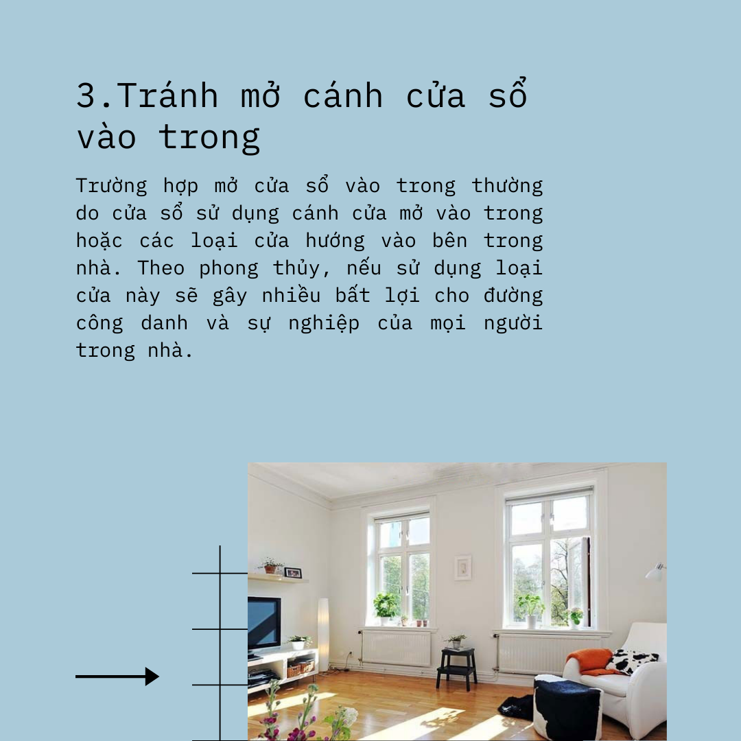 3. Tránh mở cánh cửa sổ vào trong