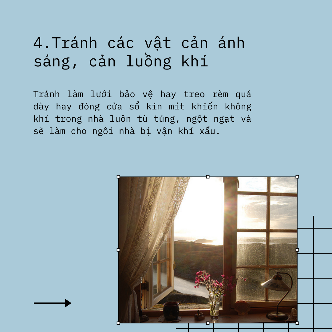 4. Tránh các vật cản ánh sáng, cản luồng khí