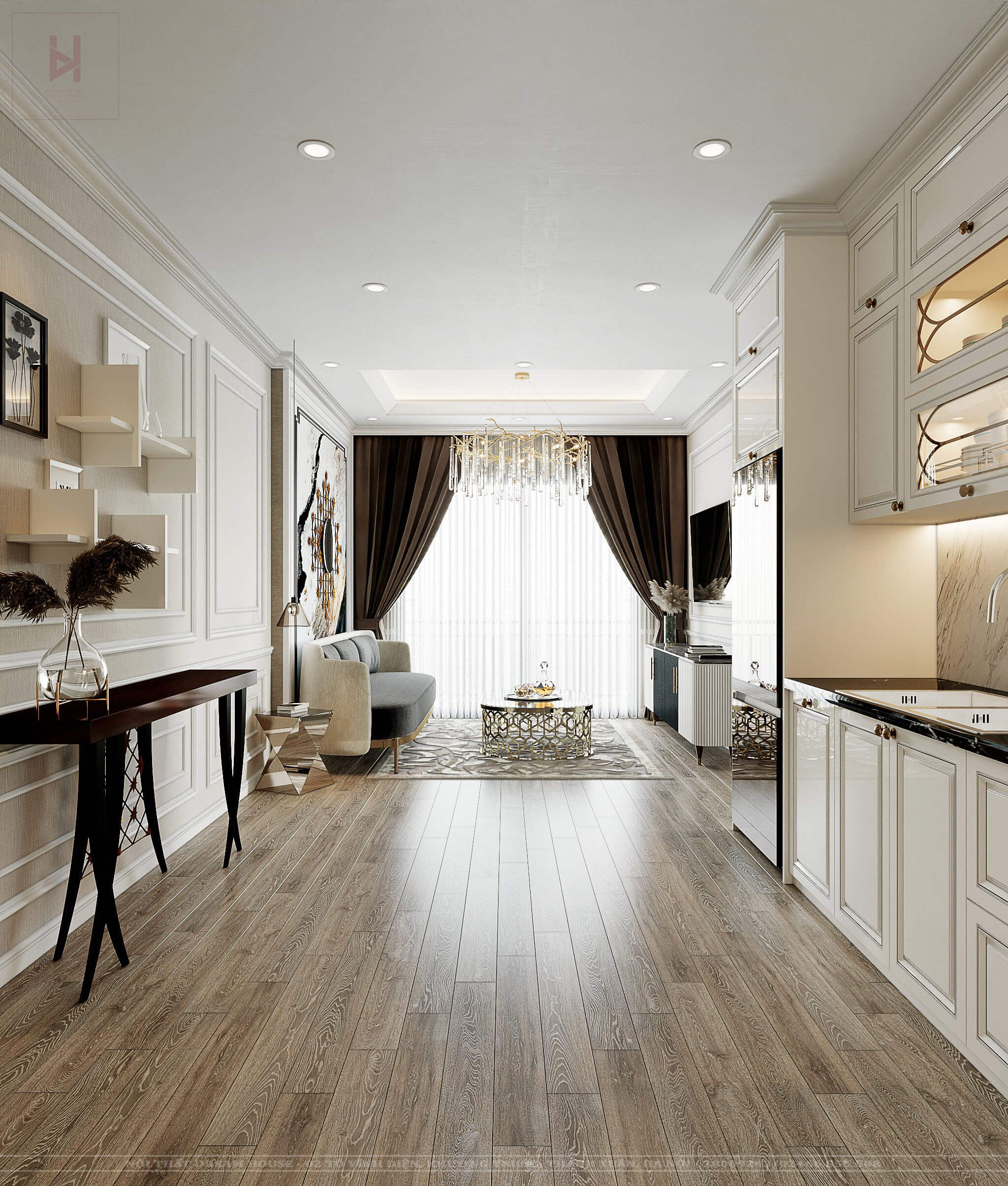 Lần này chúng ta cùng tới thăm căn hộ 3 ngủ diện tích 75m2 được thiết kế theo phong cách bán tân cổ điển. Các bức tường được làm đẹp bằng sơn nhấn, phào chỉ tạo nên nét đẹp trang trọng, thổi hồn cho bức tường vô chi, vô giác.