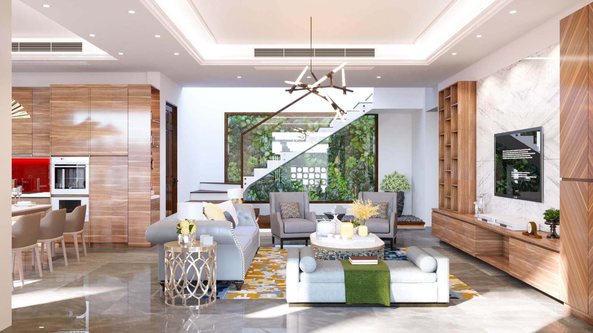 Không gian bếp sang trọng và bố trí gọn gàng giúp chúng ta thoải mái trong lúc nấu ăn.