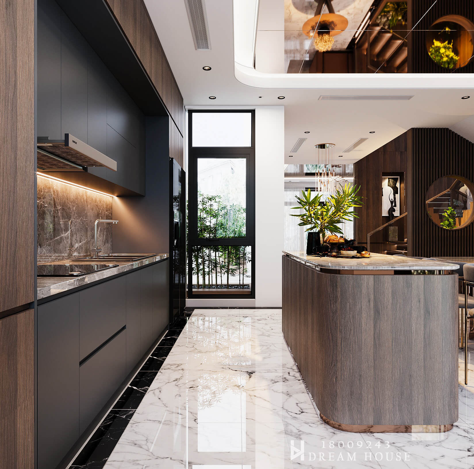 Khu bếp được thiết kế gọn gàng và rất bắt mắt.