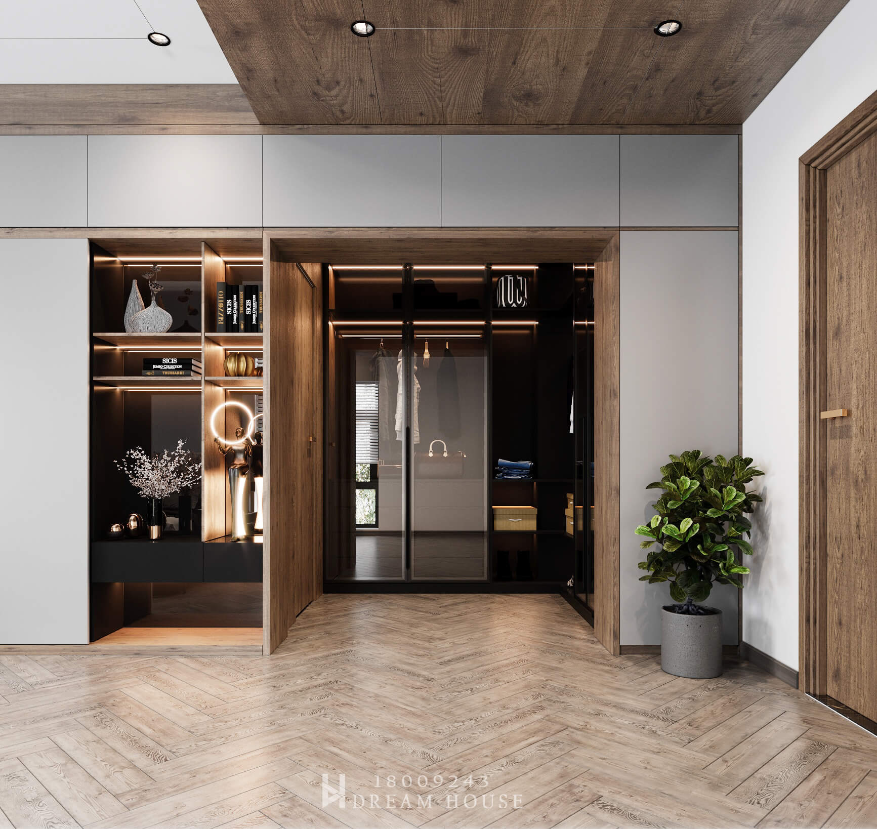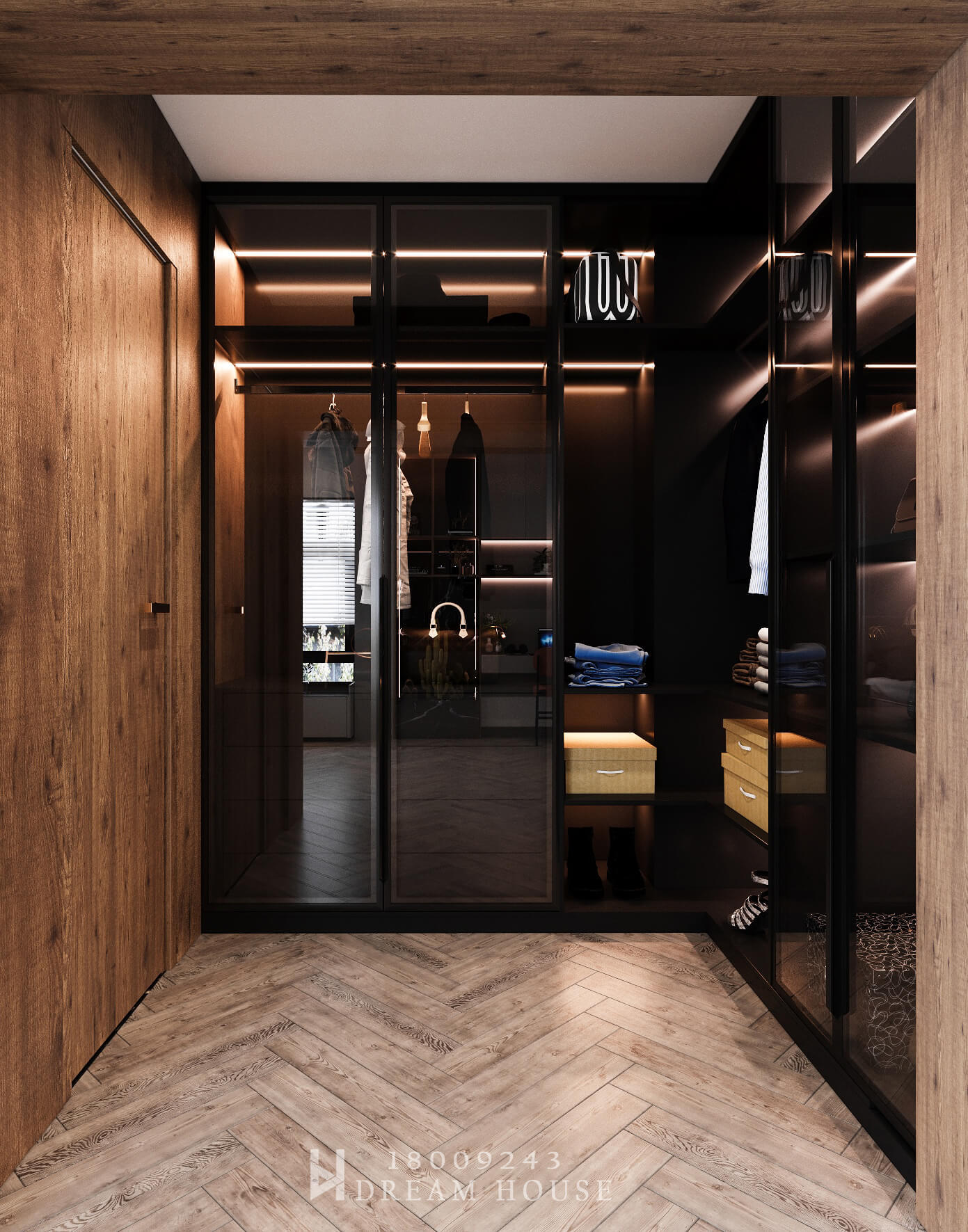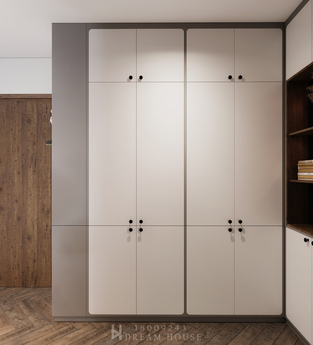 Hệ tủ quần áo và tủ trang trí được đặt sát nhau tạo nên không gian hoàng gia cho bạn.