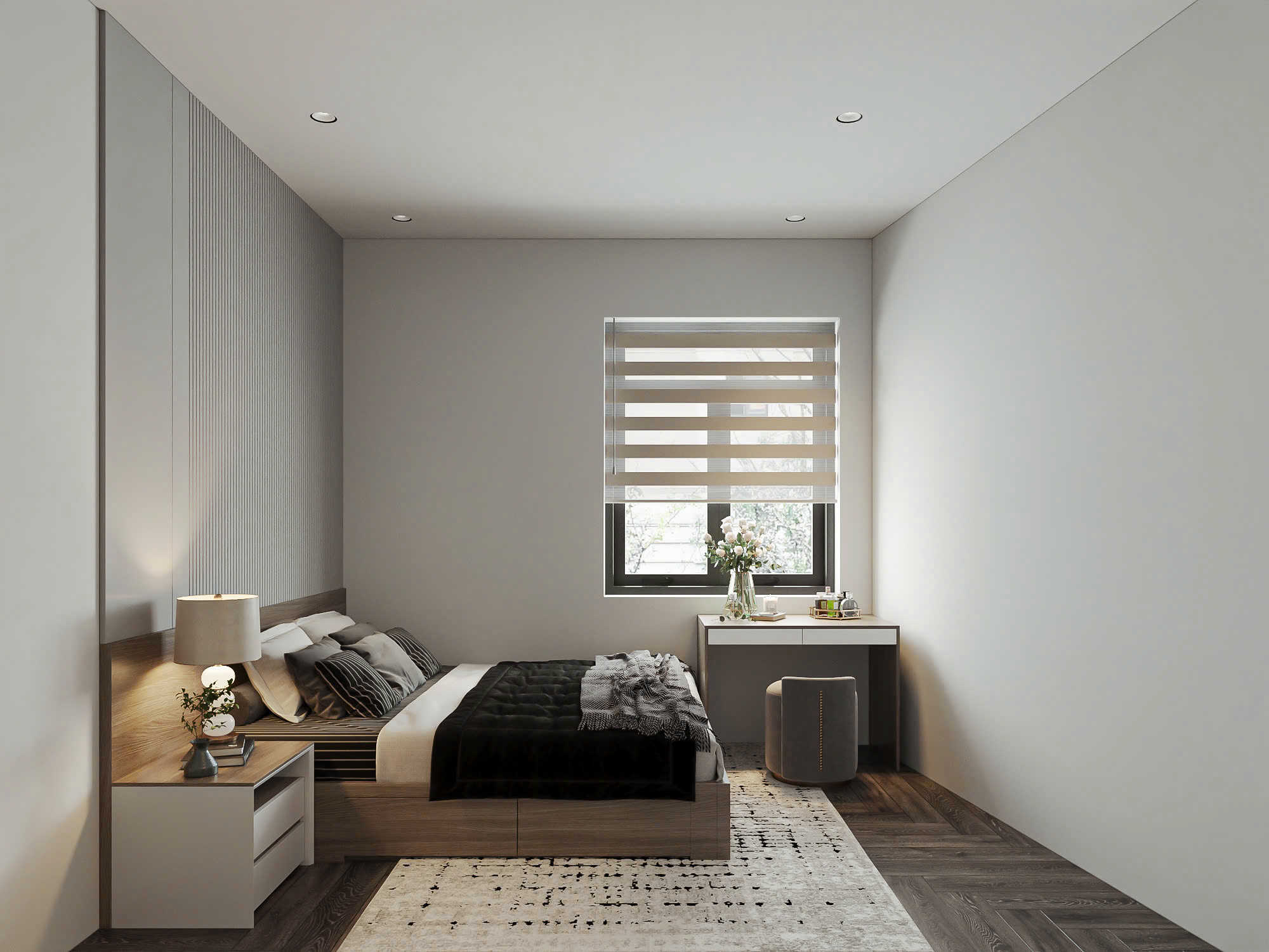 - Màu sắc: Tông màu trung tính như trắng, be, xám nhạt là lựa chọn hoàn hảo cho phòng ngủ, mang lại cảm giác bình yên, thư thái, giúp dễ dàng đi vào giấc ngủ sâu.