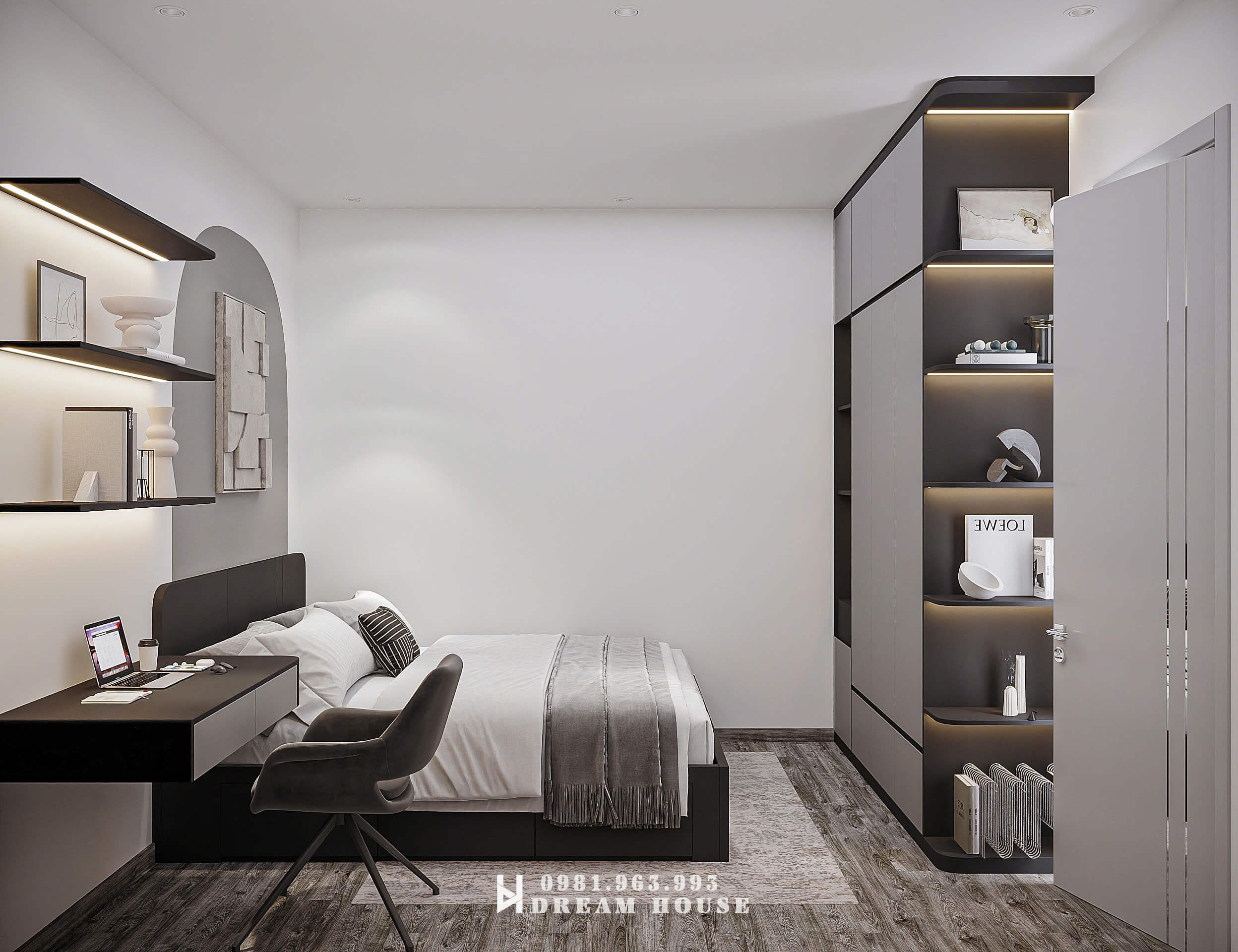 Dự toán: 300.000.000 Chủ đầu tư: Chị Mỳ Loại hình:Nhà Phố Diện tích: 110m2 Chất liệu: MDF chống ẩm  Năm thực hiện: 2025 Địa chỉ: Hưng Yên